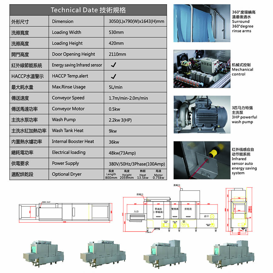 双缸/喷/烘干长龙式洗碗机