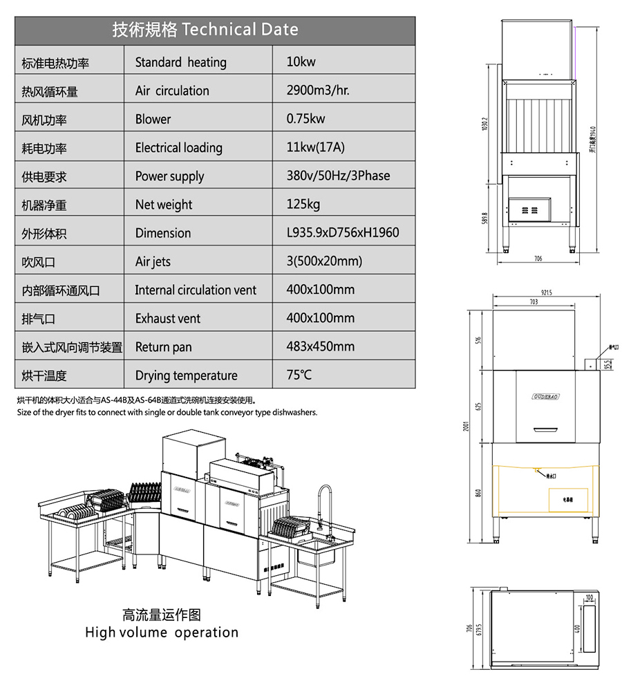 双缸/喷/烘干长龙式洗碗机