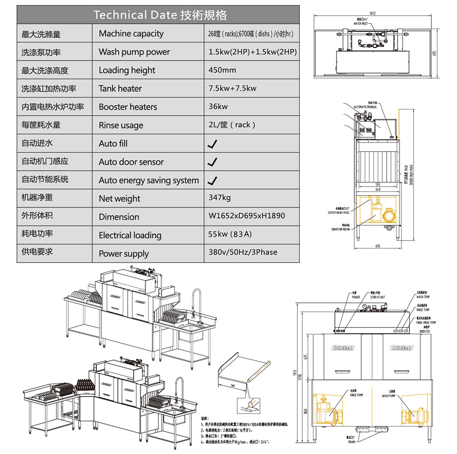八、最大洗涤量:268筐/小时;6700碟/小时