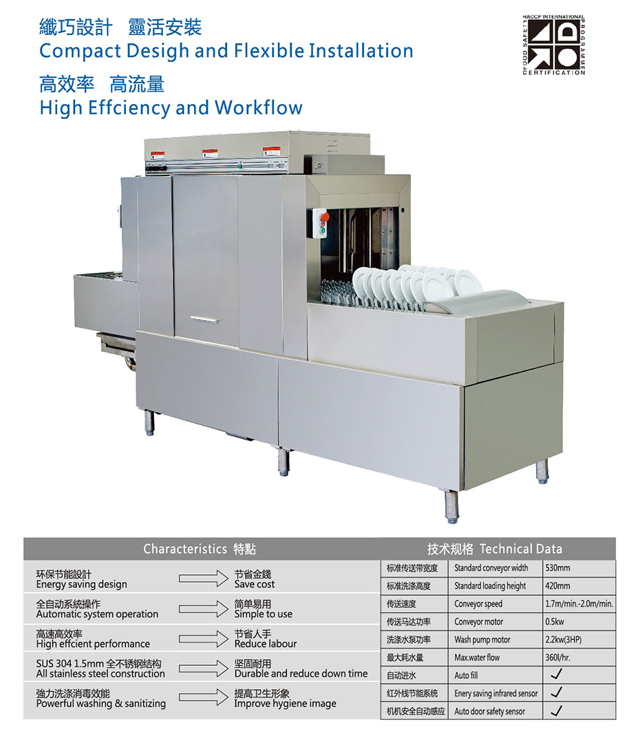 光电感应节能控制设计自动感应启动洗涤及冲洗节能设计、精准控制洗涤动作及启动高温冲洗使耗水量仅300公升/每小时并达到节能型设计,省水,省电,省清洁剂、省能源。